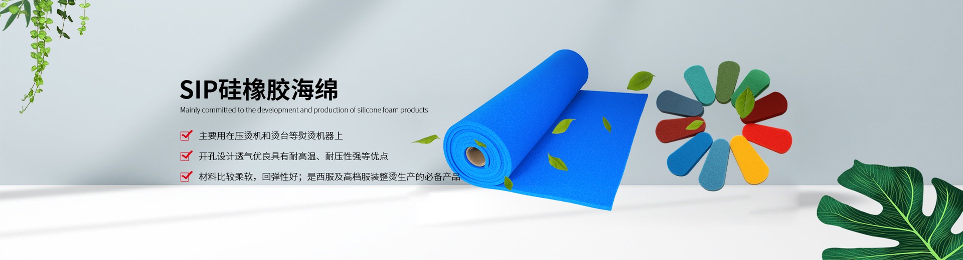 ????我公司生產的硅膠海綿具有耐高溫、耐壓、透氣性能好、抗撕拉、使用壽命長、環保等特點,主要適用于服裝干洗、水洗熨燙設備,如壓燙機和燙臺等。另外我們也提供各種燙氈、罩布等整燙專用墊料,客戶可根據不同熨燙工藝選擇不同的搭配組合,滿足高品質的熨燙要求。